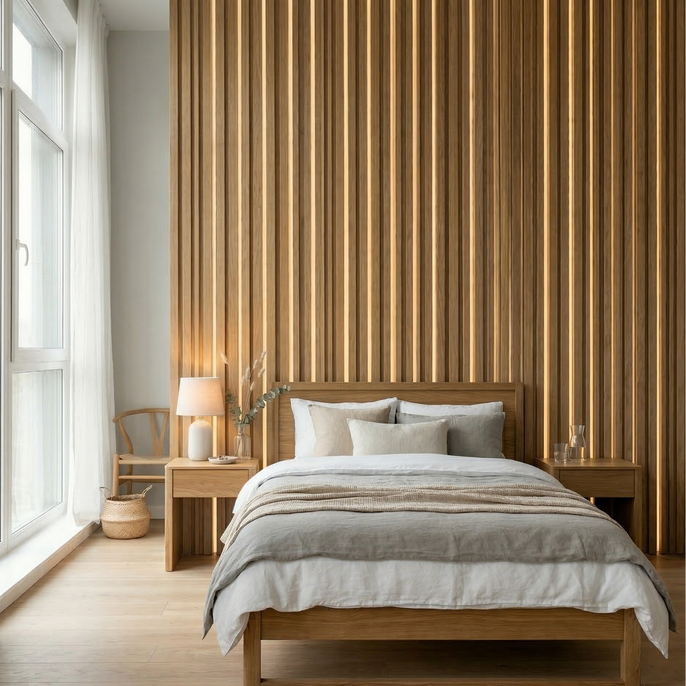 I installed the panels behind the bed and the room instantly felt more elevated. The vertical slats create a warm and sophisticated look.